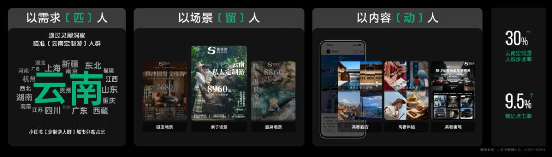 以定制旅游品牌“奢享家旅行社”为例,通过对新笔记投放加热、赛马筛选素材,笔记冷启时间从5天缩短至3天,咨询率提升16%,以小预算撬动了高意向线索。(数据来源:小红书数据中台 数据周期:2024年9月)