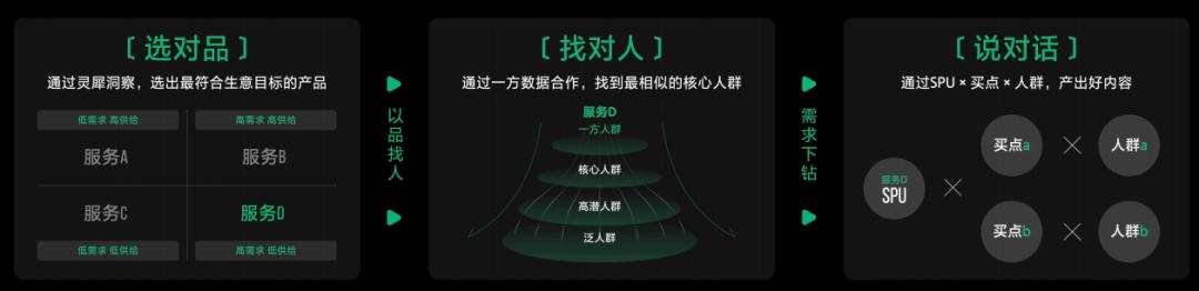 在这一环节,商家可通过灵犀洞察选出最契合目标的产品,借助一方数据找到最适配的人群,通过“SPUX人群X买点”产出优质内容,以数据和工具为加持,品牌对用户需求的理解会更细致精准,真正从源头读懂用户,以内容为媒介建立更紧密的联结。